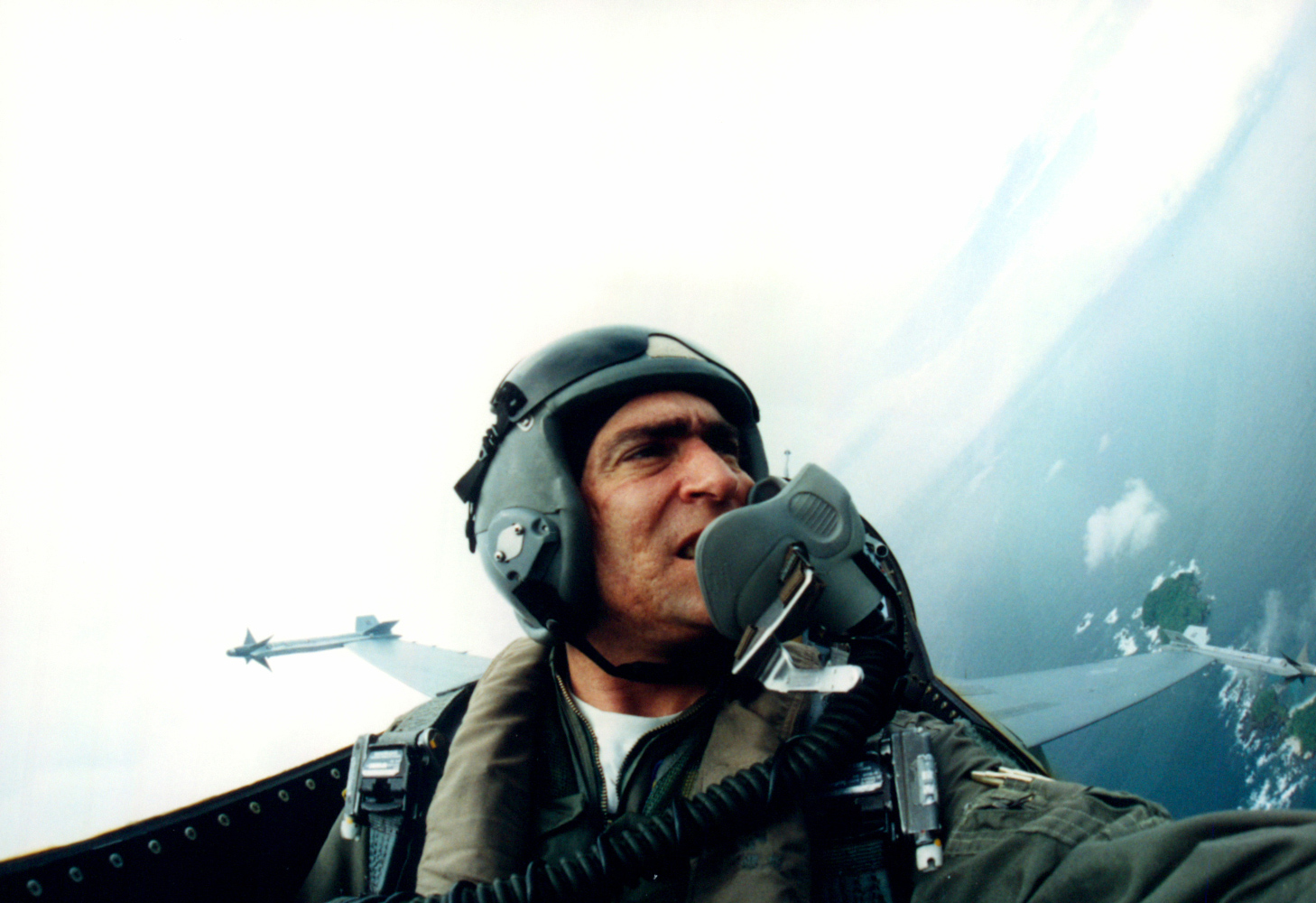 | You couldn't do a lot of fighting with gas in the external tanks so it wasn't uncommon to take little time at the beginning of the sortie for some sightseeing. | Gave one of my cameras to J.T. and he took this one of me. | I love this one that J.T. took of me. I think it's still floating around the squadron somewhere. |