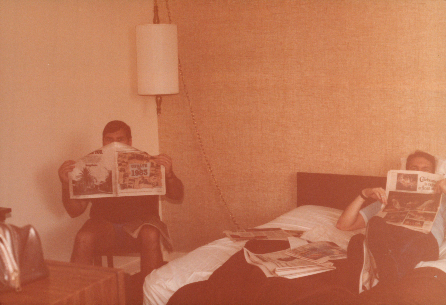 | In November of 1983 Wille Benton, Chris "Snort" Hill, Jim "B.O.B.," and I, Ron "Aileron" Yelton arrived at Homestead AFB, FL. Going from the F-106 to the F-4D was a huge step backwards for an interceptor squadron. This airplane simply was not designed to do what we did. It was bad enough that we had to fly the Lead Sled, the wing commander there at HST did not like the Air Guard at all - said we were dangerous - even though he had just lost two F-4s in the preceeding two months. Here's Willy and I getting a self portrait. | There's Jimmy goofing off. Entertaining ourselves usually meant going down to the club. One evening we found the wing commanders white-topped official sedan parked at the club. Willy had a nice ANG decal that fit perfectly ove the TAC decal on the driver's door. Took him about three weeks for someone to figure that one out. Eventually he lost his job. More on that story later. | As our class was getting ready to graduate we had a little overlap with the next class. Here's Two-Dogs taking a nap. Baggy and Paul Carrol were also in that class. |